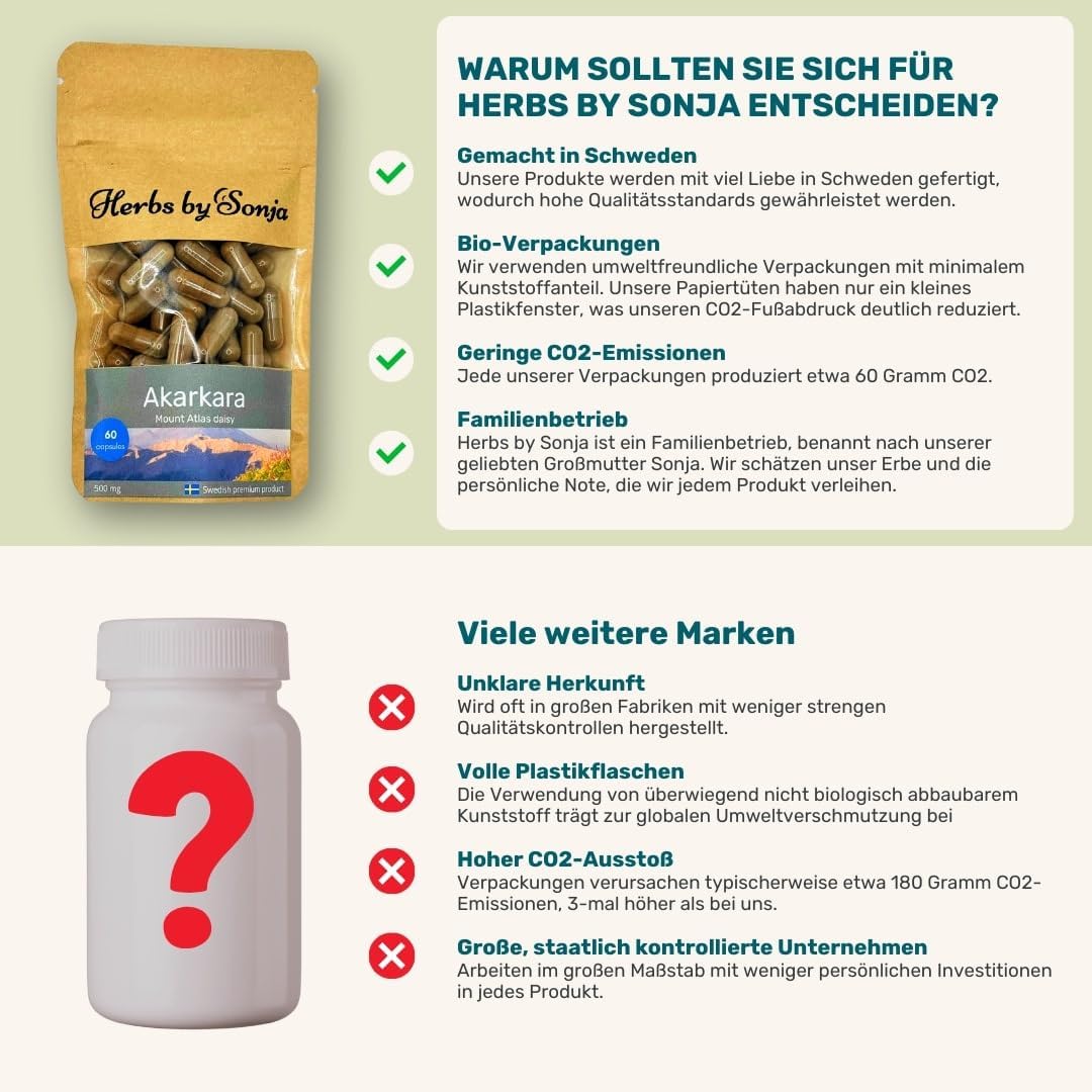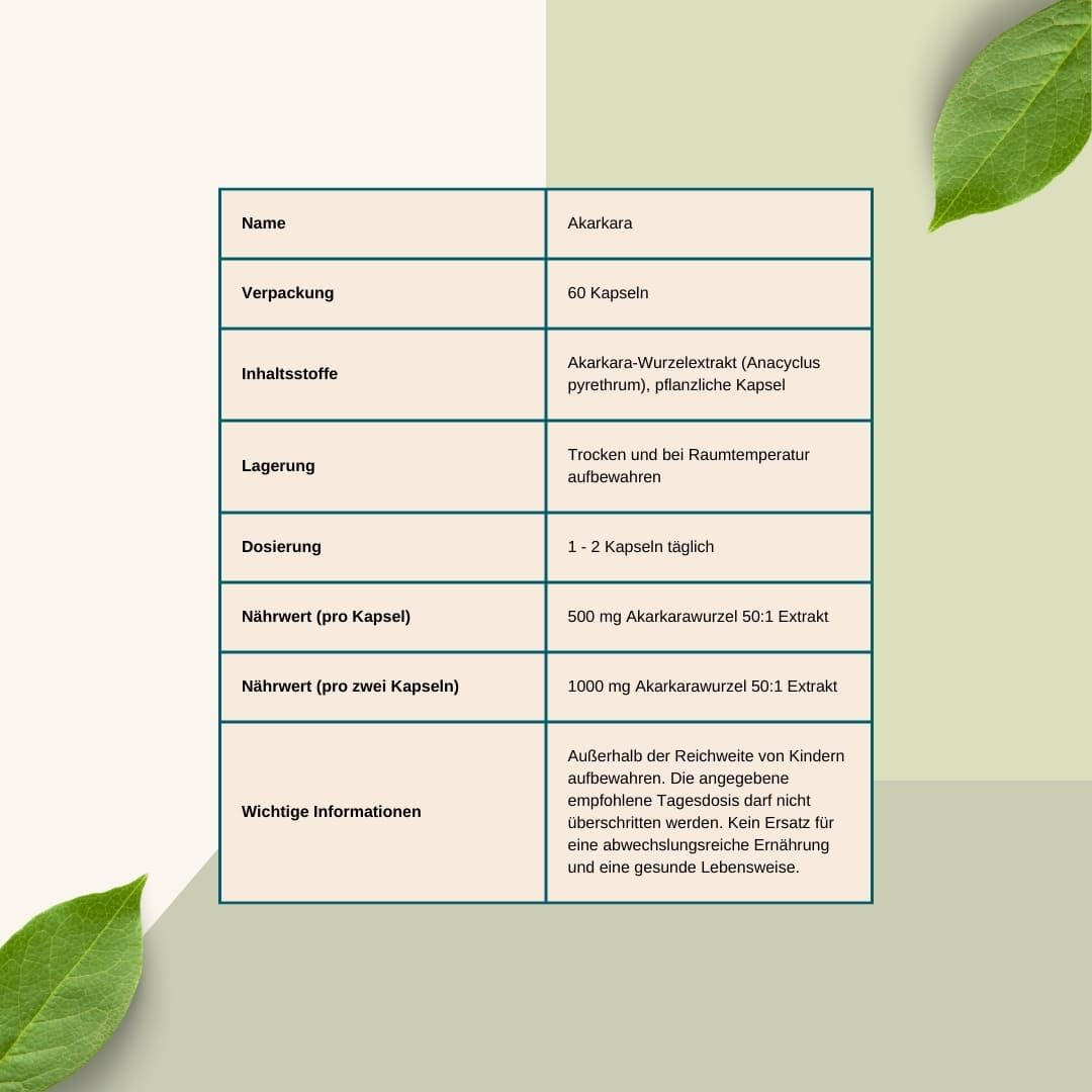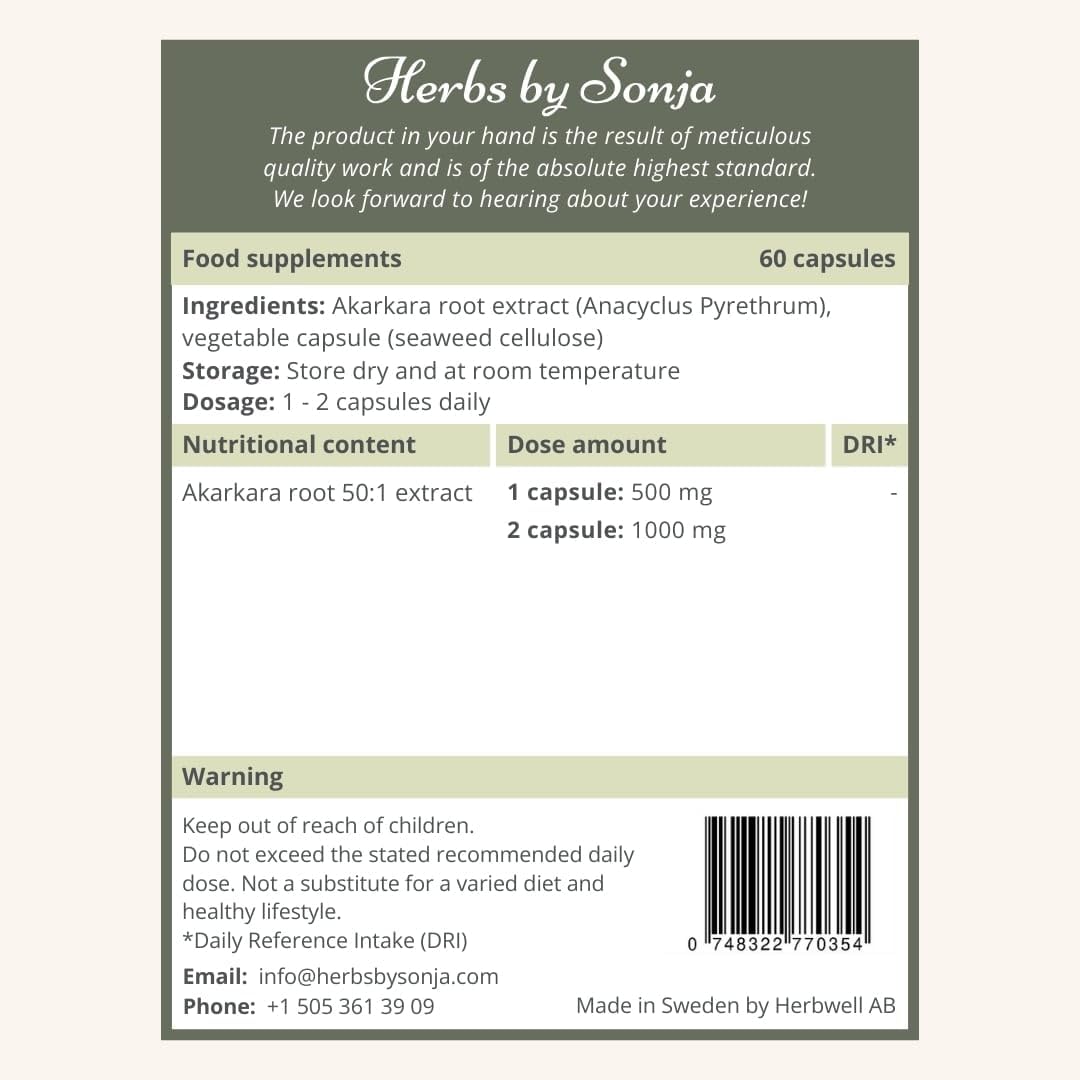 Akarkara 500 mg * 60 Capsules – Boost for Testosterone and Vitality – Digestion and Stress Management – Highly Concentrated: 500 mg per capsule without additives – Suitable for Vegans