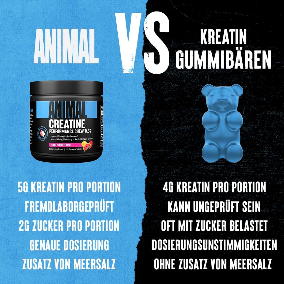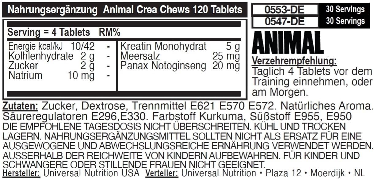 ANIMAL Creatine Performance Chew Tabs Fruit Punch – Chewable Tablets with 5 g Creatine Monohydrate per Serving & Sea Salt for Improved Effect – 120 Tablets