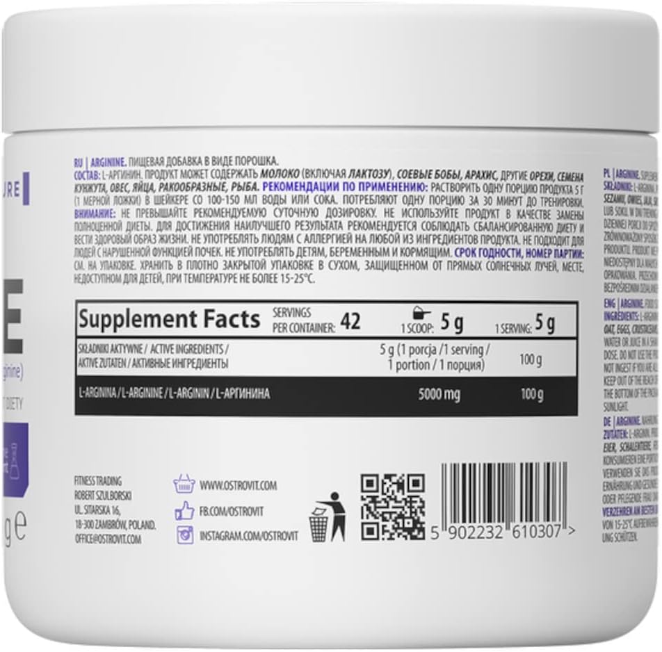 Arginine 210-42 Servings | Pre-Workout Booster | Nitrogen Oxide Enhancer | L-Arginine | Muscle Pump & Growth | Endurance | Performance | Sports Supplement