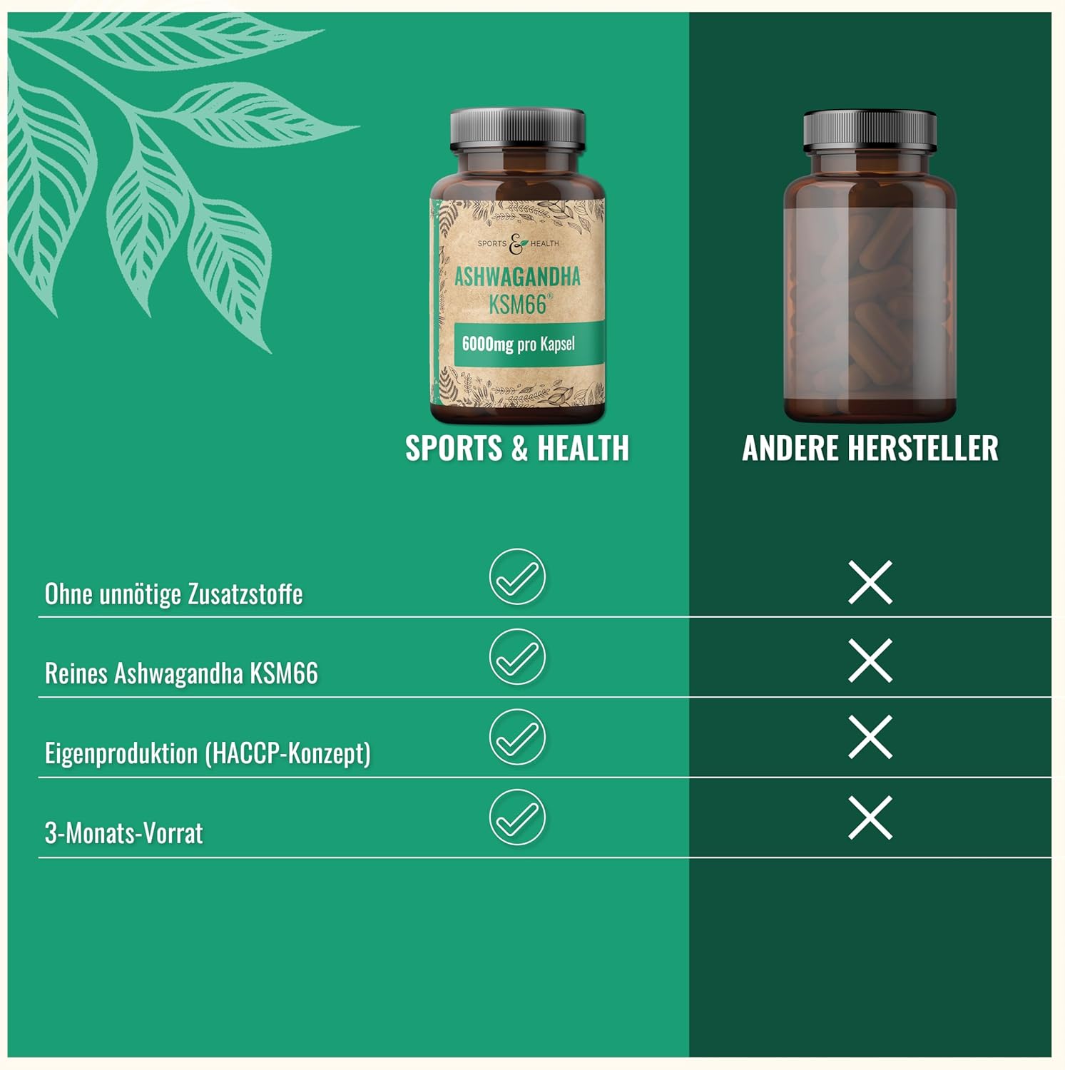 Ashwagandha KSM-66 Capsules – Ultra High Dose 6000mg per Capsule – Pure Extract without Additives – 100 Ashwagandha Capsules – KSM66 Withanolide
