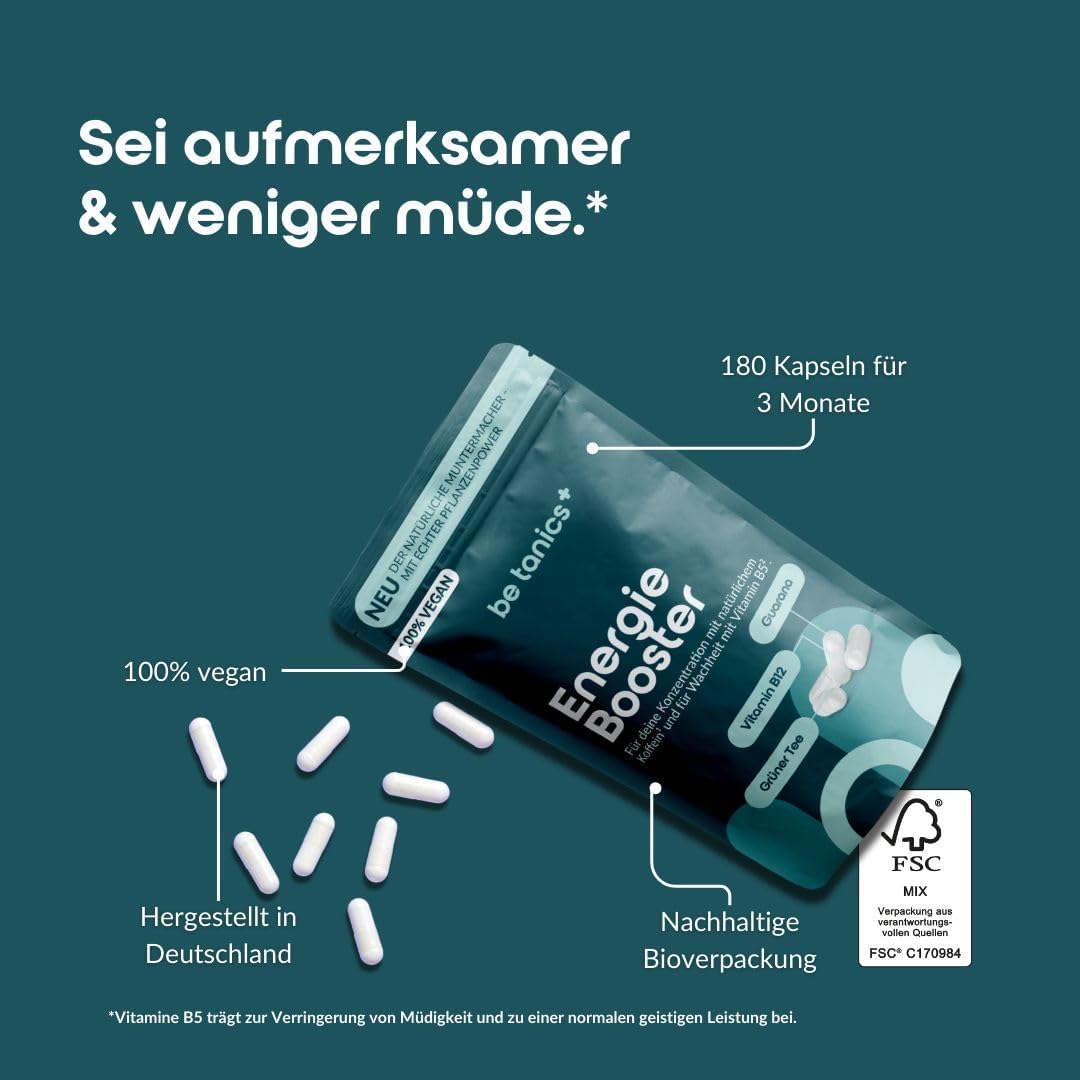 be tanics Energy Booster for Concentration with Caffeine and Vitamin B5 180 Capsules