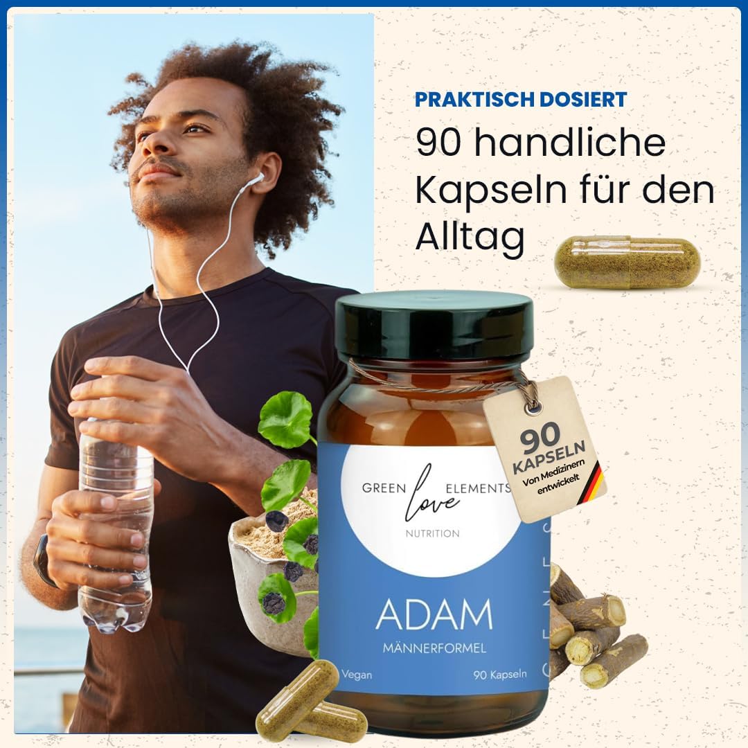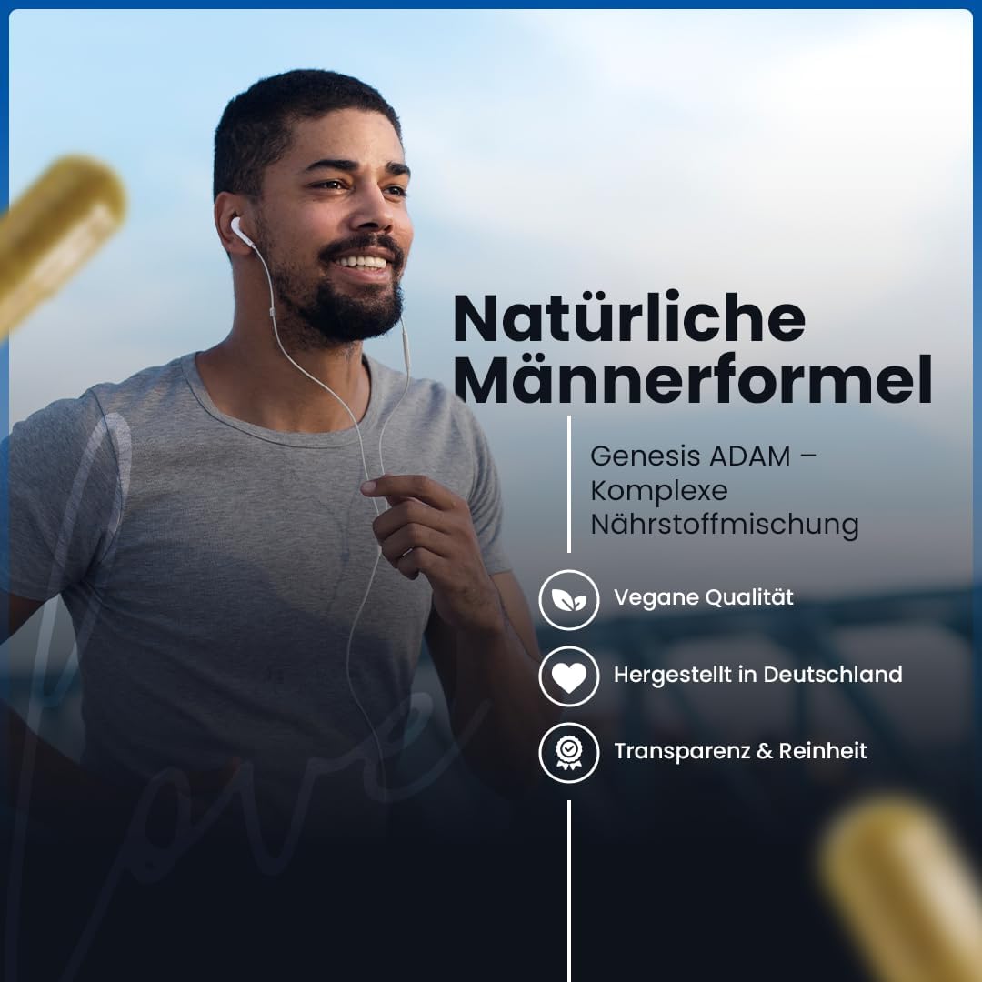 Genesis ADAM Men’s Complex – Men’s Formula with Maca, Ashwagandha, Gotu Kola, idine, Amino Acids & More – 90 Vegan Capsules – Energy, Immune System & Wellbeing – Laboratory Tested – Made in