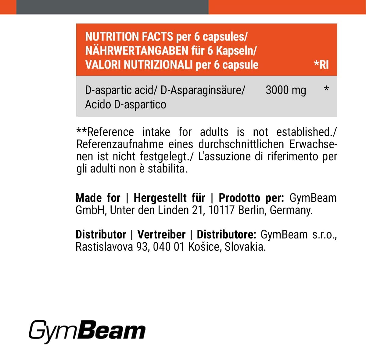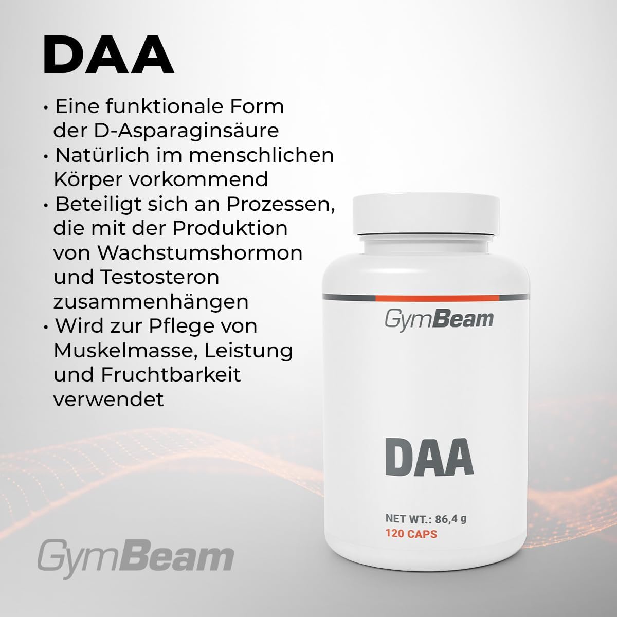 GymBeam D-Aspartic Acid (Capsules) – DAA, Testosterone Booster, Natural Support for Muscle Mass, Performance and Fertility Practical Shape, Ideal for Strength Athletes, 120 Kaps