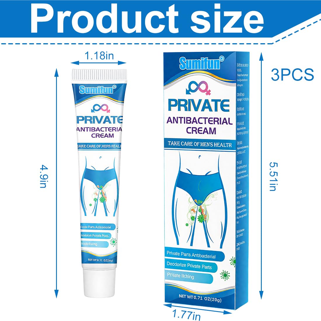 3 Private Antibacterial Cream, Men’s Intimate Area Relieves Cream, Men’s Balanitis Anti-Itching Cream, Itching Intimate Care Cream, Intimate Area Care Cream, Ointment Against Itching in the Intimate