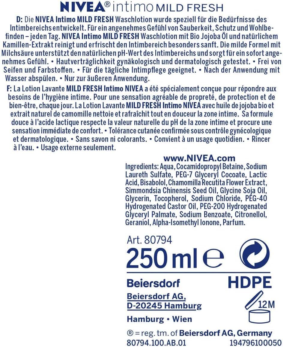 NIVEA Intimo Mild Fresh Intimate Wash Lotion, 1 x 250 ml