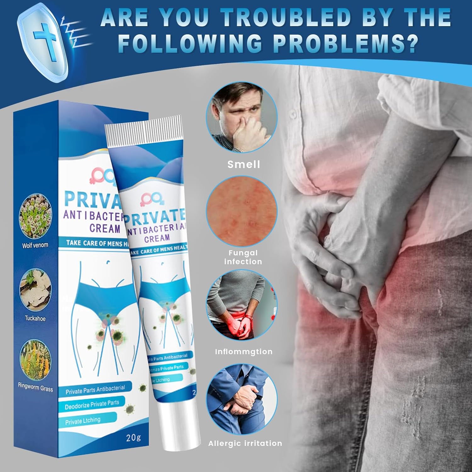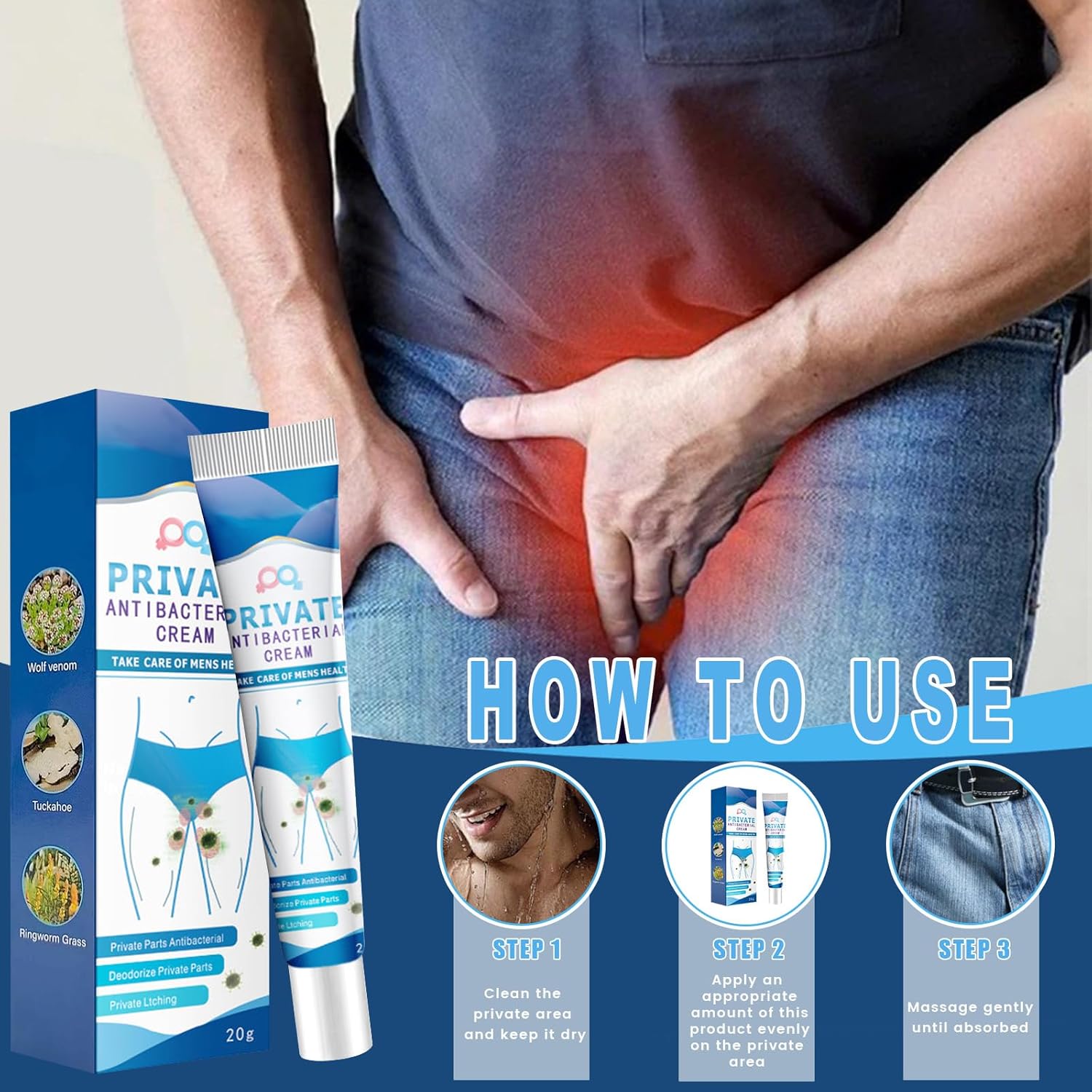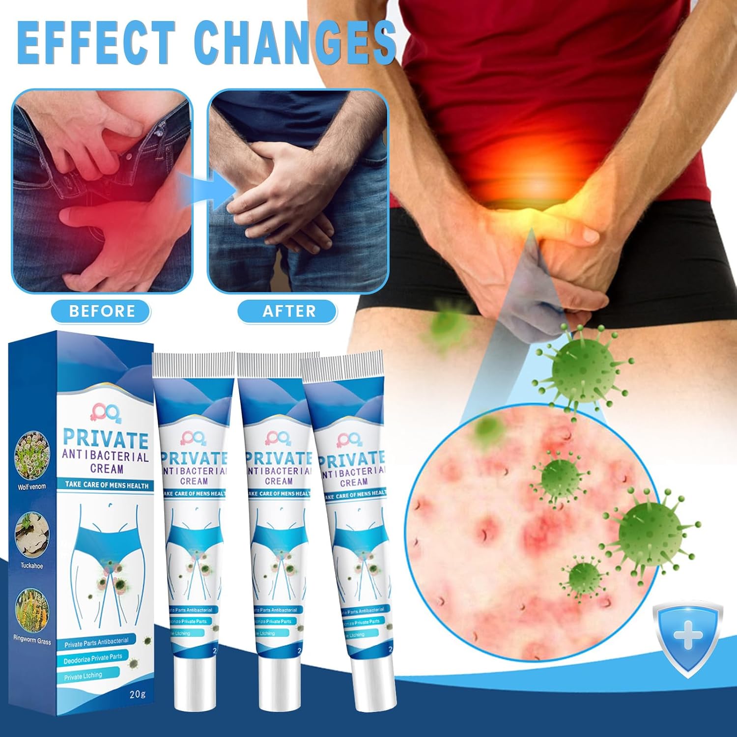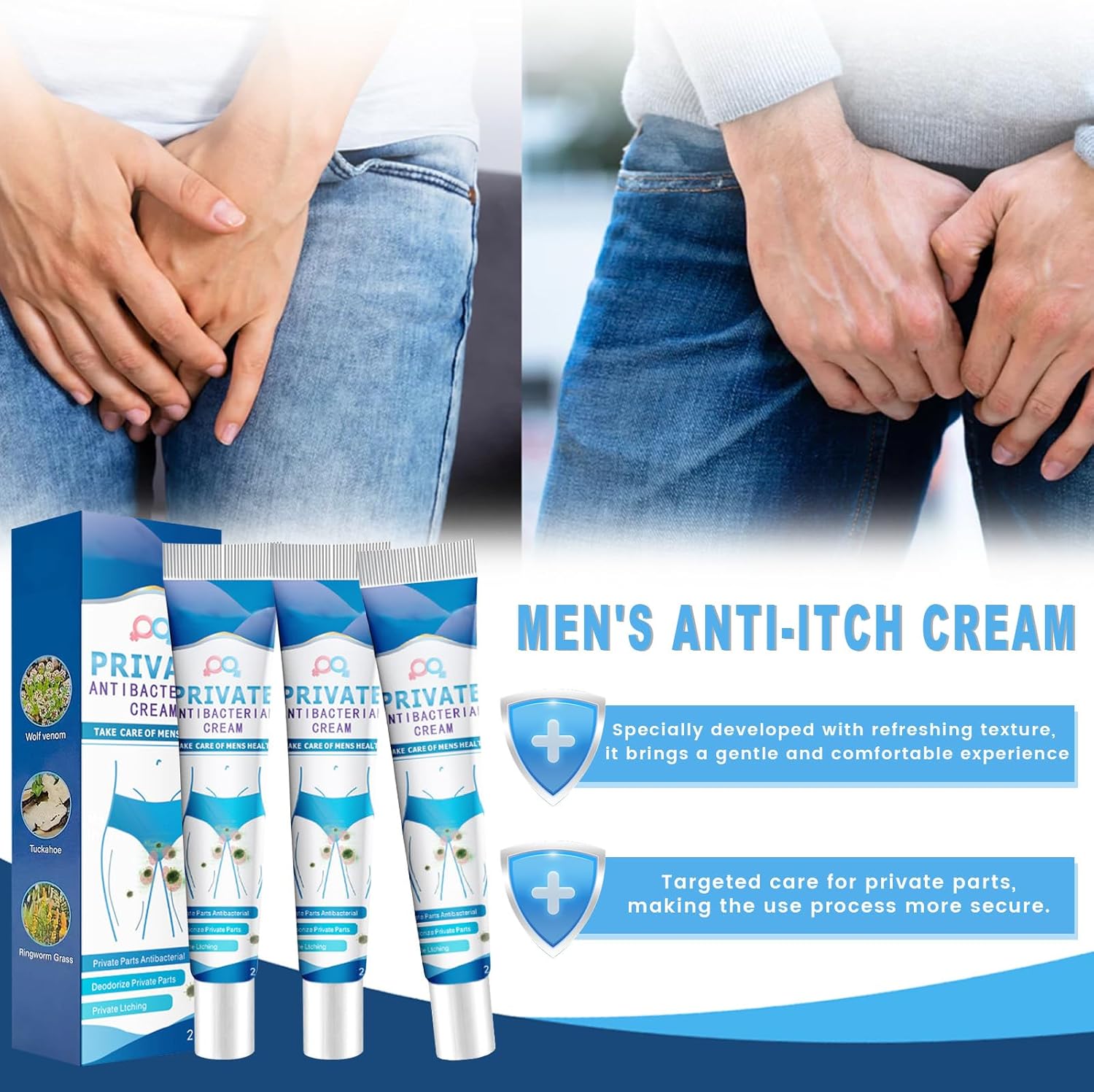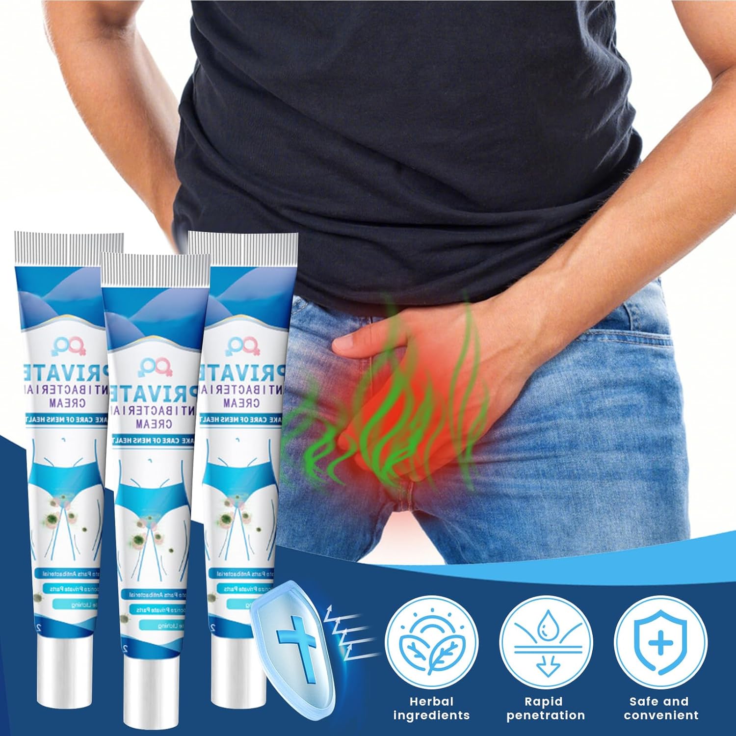 Pack of 3 Private Antibacterial Cream, Men’s Intimate Area Relieves Cream, Intimate Care Cream for Men, Men’s Care Cream Intimate Area, Intimate Care Cream for Men, Intimate Itching Ointment