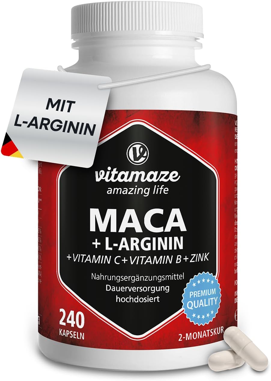 Maca Capsules High Dose 4000 mg + L-Arginine 1800 mg + Vitamins + Zinc, 240 Capsules For 2 Months, Quality Product Made In Germany Now At A Promotional Price 1
